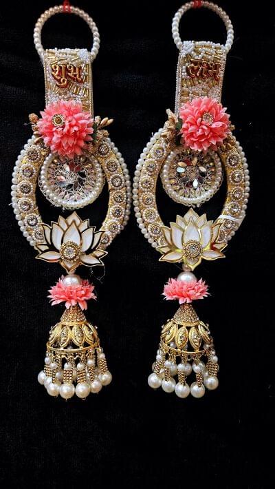 Designer hanging for home decor. Gorgeous shubh labh hangings item 66 from our Shubh Labh Hangings collection. A statement piece combining traditional artistry with contemporary style. Ideal for brides, bridesmaids, and jewellery enthusiasts.